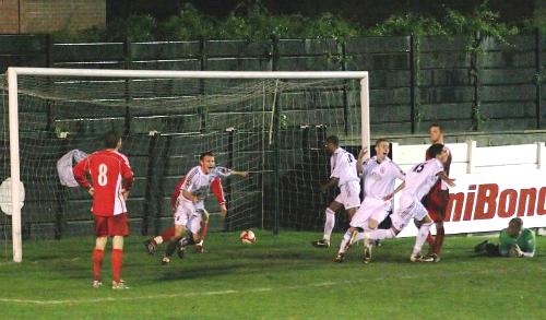 One goal down and with only seconds of normal time left on the clock, substitute Lee Blackshaw took advantage of the gap left by the Brackley right back who'd been shown his second yellow card moments earlier, to fire Steve Settle's low cross through a crowd of players and take what had been a thoroughly absorbing contest into extra time.