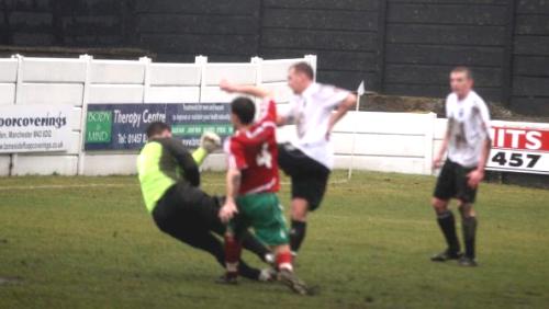 minutes from the break. A weak punch by ex-Mossley keeper