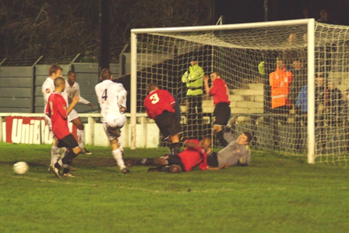 Following a blip at the start of the second period when they gave Jerome Wright the opportunity to run on goal, Mossley carried on from where they'd left off at the end of the first half and they got their due reward in the 51st minute. Paul Quinn controlled Priestley's 's fumbled attempt at dealing with a cross and fed Gareth Hamlet who had his initial shot blocked. Picking up the rebound he composed himself and after what seemed like an eternity (shades of Josh Howard's winner at Lymington in 2003), he picked his moment to fire the ball into the net .