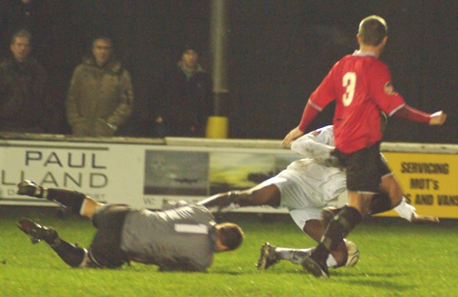 All it succeeded in doing was firing up Mossley even more and with nine minutes left Mossley put the game beyond their opponents reach and, again, it was another ball through the heart of the United defence that did the damage. Gareth Hamlet picked up the ball and took the ball into the box and as he did, his feet where whipped from under him by Priestley, giving Martin Allison the opportunity to cap a fine personal performance by dispatching the resultant penalty into the bottom left hand corner of the net.