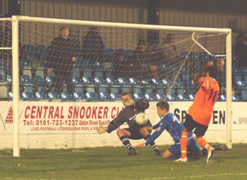 With 13 minutes left, substitute Jamie Miller and Danny Toronczak combined down the right and the latter provided a superb low cross to the far post where it was met my Lee Blackshaw. Whilst his initial shot was well saved by Lake, the Radcliffe keeper could only deflect the ball upwards, allowing Blackshaw a second bite of the cherry and the former Glossop winger headed it into the net for his third goal of the season.