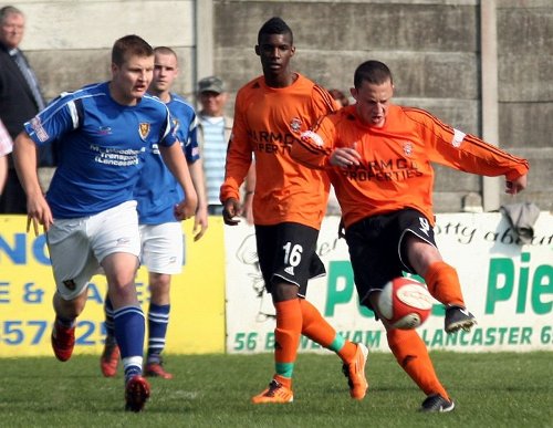 On a breezy day and on a firm pitch in north Lancashire both sides attempted to play attacking football. Lancaster's experience showing in the early stages as they dominated possession causing the visitors defence a number of problems.